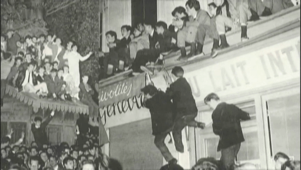 Jóvenes asistentes_2 Publicado 8 May 2018 en 960 × 544 en El tiempo de los yeyé: el concierto de París que acabó como el rosario de la aurora ← Anterior Siguiente → Jóvenes subidos a los toldos de los cafés durante el concierto en la plaza De la Nation.