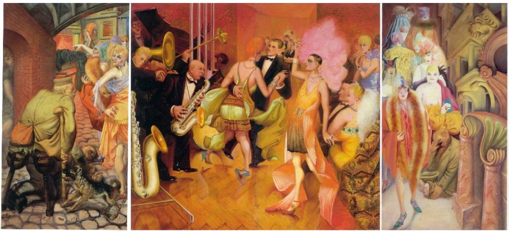 Posiblemente sea un pintor del movimiento Nueva Objetividad, Otto Dix, quien mejor ha sabido plasmar la realidad de Berlín. Cuando contemplé su tríptico Metrópolis comprendí las palabras que un poeta escribió hace poco acerca de sus habitantes: “aunque las horas se escapan, ellos no sienten que se acerca su fin”.