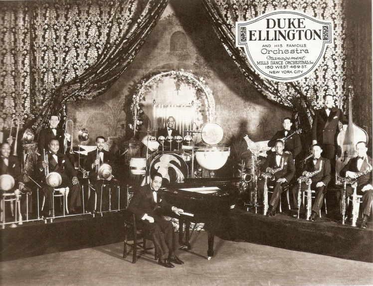 Su orquesta cambió la tosca música sincopada que tocaba un ejército de anodinos grupos jóvenes por el jazz hot a mediados del decenio de 1920, porque esta era la tendencia general. A decir verdad, bien puede ser que el típico estilo de Ellington naciera por motivos comerciales mediante la llamada ‘música de la jungla’ que respondía a las expectativas de la clientela del Cotton Club […]”. Muestra de ello es, entre otros muchos, el tema Take the ‘A’ Train, que compuso Billy Strayhorn en 1939 y pronto pasó a ser la melodía con que Ellington iniciaba las actuaciones con su orquesta. Lo escuchamos en este vídeo que subí a YouTube hará unos seis meses con fragmentos de secuencias de filmaciones de la época (el tren A, cuya línea se había inaugurado en 1936, efectuaba un trayecto que iba desde el este de Brooklyn hasta el norte de Manhattan pasando por Harlem, donde se ubicaba el Cotton) con otras de cortometrajes con Ellington y su orquesta actuando en el famoso club.