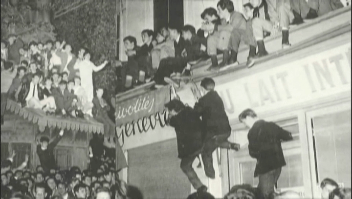 Cuando se escucharon los primeros sones de una guitarra eléctrica empezó el delirio, y con Sylvie Vartan y Johnny Hallyday llegó el éxtasis. Al tiempo, en algunas zonas de la plaza empezaron a verse algunos claros. Chicos y chicas se apartaban, los blousons arrojaban botellas de cerveza vacías contra los escaparates y provocaban a cuantos les recriminaban su actitud. Sucedió un intercambio de insultos e increpaciones, puñetazos y golpes. Bien pertrechados con palos, cadenas, puños americanos y otros objetos contundentes, se hicieron los amos de la situación. La policía no podía llegar hasta ellos.
